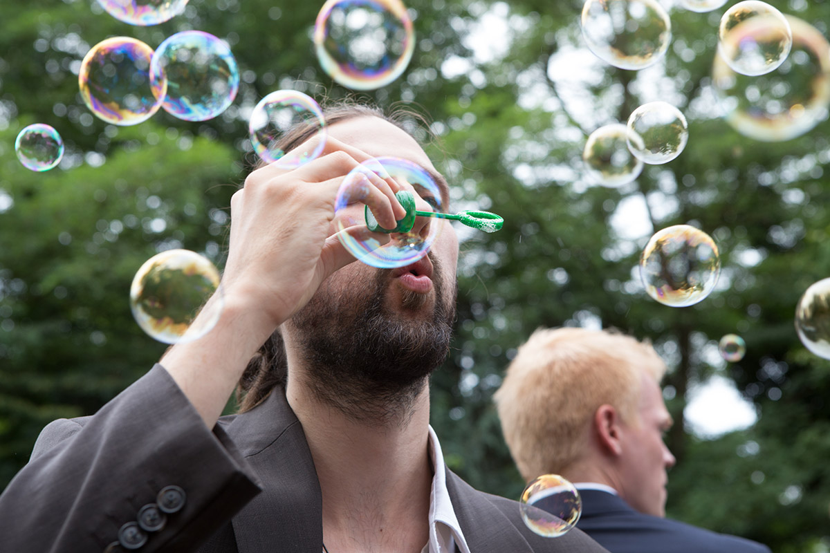 sollte ich „unsichtbar“ sein und gleichzeitig im richtigen Moment alle animieren. Ich muss die wichtigen, offiziellen Situationen treffsicher einfangen, und die stillen, unscheinbaren und so wunderbaren persönlichen Momente erahnen und festhalten – ohne sie zu stören. Auf Hochzeiten bin ich Diplomat und Dompteur. Ich springe mit dem Brautpaar in den Tag, und es entstehen Bildern, die ihre Hochzeit immer wieder lebendig werden lassen.